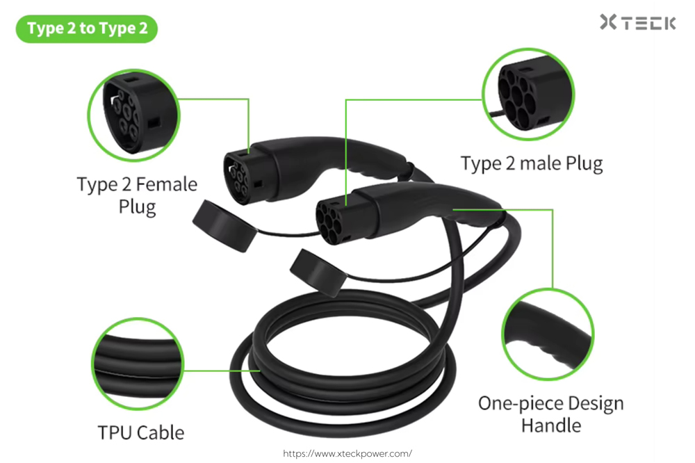 A Type 2 to Type 2 cable (often called a "dual-head" or "female-to-male" cable) connects an EV with a Type 2 inlet to a charging station equipped with a Type 2 socket. Unlike tethered stations, these cables provide the flexibility required for universal public charging.