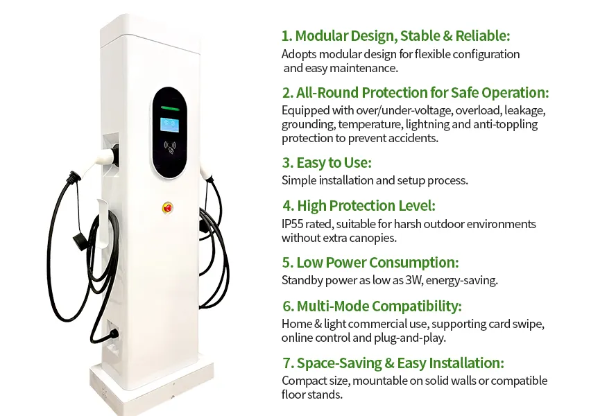 Equipped with two charging guns (7kW*2 /11kW*2 /22kW*2), it allows two electric vehicles to charge simultaneously, optimizing convenience for users.